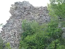 À proximité se trouvent les ruines de l'église de Saint-Nicolas ; cet édifice est constitué d'une nef unique prolongée par une abside ; à l'intérieur, des pilastres divisent la nef en trois travées[3]. Les murs sont constitués de blocs de trachyte grossièrement taillés ; des pierres tombales ont été utilisées pour servir de pavement[3]. Des fragments de fresques datant de la seconde moitié du XIVe siècle ont été conservés[3].