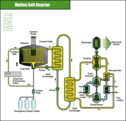 Le réacteur nucléaire à sels fondus utilise le sel fondu comme caloporteur. De nombreuses variantes ont été étudiées et quelques prototypes construits. La plupart des concepts actuellement étudiés se basent sur un combustible dissous au sein d'un sel fluoré circulant dans un cœur en graphite (qui modère les neutrons et assure la criticité). D'autres concepts reposent sur un combustible dispersé dans le graphite, le sel agissant en tant que modérateur. Des variantes innovantes associent au réacteur une usine de retraitement en ligne pour extraire en continu les produits de fission.
