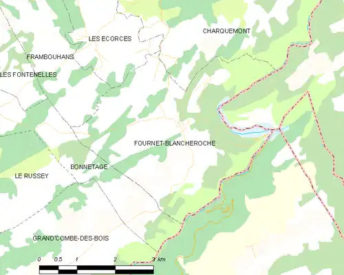- ↑ « Orthodromie entre Fournet-Blancheroche et Charquemont », sur fr.distance.to (consulté le ).
