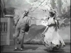 Polly et Foxy Grandpa exécutent une danse de style vaudeville, sur une petite scène, dans ce qui semble être un rythme ragtime.
