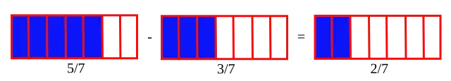 - Le dénominateur 7 est le même pour chaque fraction.