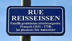 - ↑ Maurice Moszberger (dir.), Dictionnaire historique des rues de Strasbourg, Le Verger, Barr, 2012 (nouvelle éd. révisée), p. 443 (ISBN 9782845741393).