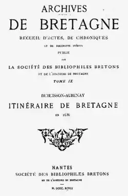 - ↑ « Itinéraire de Bretagne en 1636, d'après le manuscrit original. T. 1 », sur Gallica, 1898-1902 (consulté le ).