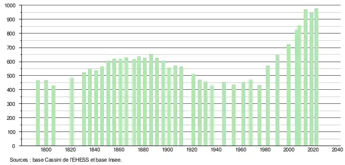 - ↑ Fiches Insee - Populations de référence de la commune pour les années 2006, 2007, 2008, 2009, 2010, 2011, 2012, 2013, 2014, 2015, 2016, 2017, 2018, 2019, 2020, 2021 et 2022.