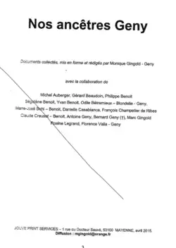 - Ouvrage à compte d'auteur sur les origines de la famille Gény, Nos ancêtres Gény.