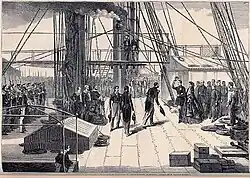 Le les navires de guerre étrangers présents dans le port, qui jusqu'alors avaient empêché le blocus de la forteresse par la mer, s'en vont[42] à la suite d'un accord secret entre Cavour et Napoléon III. Le même jour, la flotte de la Maison de Savoie, encore présente à Naples, navigue vers Gaëte et mouille à Mola di Gaeta. Cette flotte, sous le commandement de l'amiral Carlo Pellion di Persano, est composée de dix navires la guerre : Maria Adelaide (navire amiral), Costituzione, Ardita, Veloce, Carlo Alberto, Confienza, Vittorio Emanuele I, Monzambano, Garibaldi (ex vaisseau sicilien) et Vinzaglio.