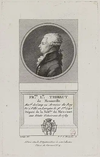 Il fut élu député de la noblesse du bailliage de Mirecourt aux États généraux de 1789 puis siégea à l'Assemblée constituante. Adjoint au comité de la marine, il défendit le décret sur les colonies. À propos de la Constitution, il réclama pour le roi le droit de grâce.