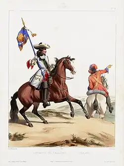 Le 1er février 1670, les compagnies de Cavalerie dite de "100 maîtres" furent partagées en deux, et donnèrent 66 escadrons de 2 compagnies de 50 maîtres chacune[6]. L'escadron de La Rablière était l'un de ces 66 escadrons de cavalerie légère.