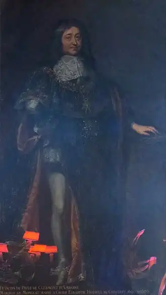 On sait que François de Clermont en 1660, après le siège d'Arras, fut nommé maître de camp du régiment de Navarre. L'année suivante, il reçut une blessure à la tête au siège de La Bassée ; et en 1643 il eut l'agrément du Roi pour la charge de grand maître de la garde-robe du roi en 1644, vacante par la démission du marquis de Montespan. Le 7 mai 1654, il remplit, au sacre de Louis XIV, les fonctions de grand panetier de France. Il fut nommé, en 1661, chevalier de l'Ordre du Saint-Esprit.[pas clair]