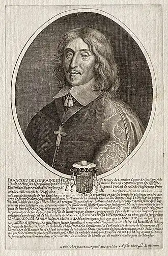 François de Lorraine-Chaligny, fils d'Henri de Lorraine, comte de Chaligny, et de Claude de Moy, né à Fougères le , mort à Dieuze le , fut évêque de Verdun de 1623 à 1661. Il est inhumé une première fois en l’église du couvent des capucins de Varangéville puis ses restes sont transférés dans l'église des Cordeliers de Nancy.