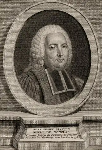 - ↑ J. P. F. de Ripert-Monclar, Mémoire pour le procureur général du parlement de Provence, tendant à établir la souveraineté du roi de France sur Avignon et le comtat Venaissin, Impr. royale, 1768, 2 vol. in-8°.