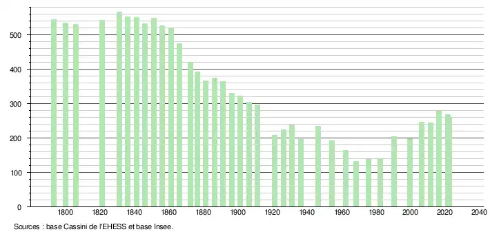 - ↑ Fiches Insee - Populations de référence de la commune pour les années 2006, 2007, 2008, 2009, 2010, 2011, 2012, 2013, 2014, 2015, 2016, 2017, 2018, 2019, 2020, 2021 et 2022.