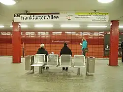 La station Frankfurter Allee de la ligne 5 du métro de Berlin, est située entre la station Samariterstraße, en direction du terminus Hauptbahnhof, et la station Magdalenenstraße, en direction du terminus Hönow[1].
