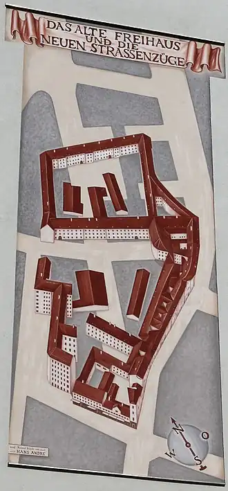 Au début du XXe siècle, il est clair que le complexe avec ses logements insalubres gêne la structure de la ville moderne. En 1913, le conseil municipal décide d'un plan de construction pour cette partie du 4e arrondissement, qui prévoit plusieurs zones de circulation publique sur la zone de la Freihaus (par exemple l'extension de l'Operngasse à la Margaretenstraße) et détermine les noms de rue. La démolition de la Freihaus, qui commence immédiatement, est retardée par la Première Guerre mondiale et les crises économiques qui suivent. De 1935 à 1937, la majeure partie de la zone est complètement défrichée ; des vestiges des anciens bâtiments survivent. Ceux-ci sont gravement endommagés par les bombes de la Seconde Guerre mondiale, les bâtiments restants sont rasés entre 1968 et 1970.