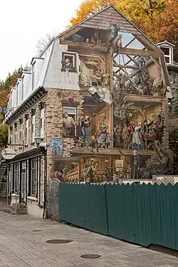 - La Fresque des Québécois a été dévoilée le et restitue à elle seule près de 400 ans d'histoire de la ville. Cette fresque est située sur l'un des murs de la maison Soumande, dans la plus ancienne partie de la ville soit : le Vieux-Québec.