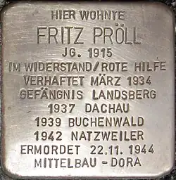 Fritz Pröll (né le à Augsbourg, mort le au camp de concentration de Dora) est un résistant allemand au nazisme.