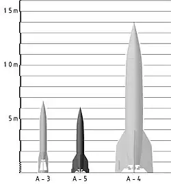 Fin 1937, un an après la date prévue par von Braun, la fabrication des quatre premiers exemplaires de l'A3 est achevée. Mais les essais en vol effectués en décembre se passent mal : le système de guidage de la fusée ne parvient pas à faire face aux vents violents qui soufflent à cette période de l'année et le contrôle de la fusée est perdu à chaque essai. Les essais en soufflerie, réalisés par Rudolf Hermann mais dont les résultats sont connus trop tard, mettent en cause l'aérodynamique de la fusée qui la rend trop stable et donc non manœuvrable, et un problème d'efficacité des gouvernes et des déflecteurs de jet incapables de contrer le mouvement de roulis. Par ailleurs, une faille fondamentale est découverte dans le système de guidage : la plateforme gyroscopique ne fonctionne plus lorsque le roulis fait tourner la fusée autour de son axe de plus de 30°, Pour régler le problème, Hermann rejoint l'équipe de Peenemünde et recrute les meilleurs aérodynamiciens disponibles. La construction d'une soufflerie à circuit ouvert est lancée, permettant de tester le comportement de la fusée à Mach 4,4, ce qui constitue une première mondiale. La veine principale doit avoir 40 cm de diamètre. Sa construction dans la partie est du site de Peenemünde est ralentie par les problèmes techniques rencontrés et elle n'entrera en fonction qu'en ; la vitesse visée ne sera atteinte que vers 1942/1943. Les responsables du projet décident de développer une version à échelle réduite de la future A4 tirant les leçons de l'étude aérodynamique qui va être réalisée. Hermann Kurzweg, aérodynamicien adjoint de Hermann, donne une forme allongée à l'empennage pour permettre au missile de franchir le mur du son. Le résultat, issu d'études empiriques faute de disposer d'une soufflerie opérationnelle, donne son apparence caractéristique à l'A5 (et par la suite l'A4)[7]. L'A5 reprend la plupart des organes internes de l'A3 mais sa forme diffère et le système de guidage autonome est remplacé par un système de guidage depuis le sol par radio. Dornberger décide que l'A5 doit permettre la mise au point de toutes les techniques qui seront nécessaires à l'A4 telles que le franchissement du mur du son, le guidage à l'aide des déflecteurs situés à l'extrémité du moteur-fusée et la mise au point des gyroscopes utilisés. La mise au point de ces derniers risquant de reporter les lancements, on sélectionne à la place un modèle plus lourd développé par Siemens. Des lancements de versions à échelle réduite de l'A5 sont effectués pour tester différentes formes d'empennage avant le premier vol qui a lieu en . Les trois vols effectués se déroulent parfaitement en particulier le système de guidage place la fusée sur la trajectoire visée. La fusée ne dépasse pas la vitesse du son mais au cours de tests effectués par la suite, elle culmine à une altitude d'environ 16 km et franchit une distance de 18 km[5].