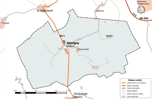 - ↑ « Orthodromie entre Gémigny et Bricy », sur fr.distance.to (consulté le ).