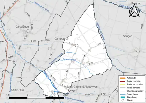 Les communes limitrophes sont Campugnan, Saint-Girons-d'Aiguevives, Saint-Paul et Saugon.