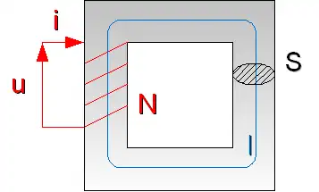 Soit un circuit magnétique entouré par un bobinage comportant N spires alimenté par une tension .