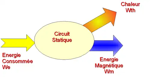 Donc on alimente un circuit magnétique avec une tension u, le circuit consomme une puissance We, on obtient de la chaleur W_th (les câbles chauffent) et le reste est de l'énergie magnétique.
