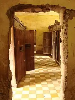 Le Kampuchéa démocratique ne compte officiellement pas de prisons. Le pays se couvre néanmoins de « centres de rééducation », souvent installés dans d'anciens temples ou d'anciennes écoles. Jusqu'en 1976, la fonction rééducative semble avoir été relativement prise au sérieux, et 20 à 30 % des détenus finissent par être libérés. Ensuite, leur situation empire nettement. Les Cambodgiens peuvent être arrêtés sous le moindre prétexte, allant du vol (ce qui inclut le chapardage ou la cueillette de fruits pour échapper à la faim) aux propos « subversifs », en passant par les simples manifestations d'impatience, les relations sexuelles hors mariage ou une simple origine sociale « impure ». L'usage de la torture est généralisé. Le centre de détention le plus connu est la prison de Tuol Sleng, connu sous le nom de code S-21. Ancien lycée, Tuol Sleng est placé directement sous le contrôle du « Centre » — soit du Parti communiste du Kampuchéa — et placé sous la responsabilité de Kang Kek Ieu (alias Douch). En tant que prison du comité central, S-21 accueille tout particulièrement les anciens cadres khmers rouges disgraciés : entre 14 000 et 20 000 personnes environ, dont quelque 1 200 enfants, y trouvent la mort, avec parfois plusieurs centaines d'exécutions par jour[58]. Seules six ou sept personnes survivent à S-21, sauvés par leurs talents, tels que la sculpture ou la peinture. À leur arrivée en 1979, les Vietnamiens découvrent à Tuol Sleng les corps d'une cinquantaine de prisonniers, que les Khmers rouges ont exécutés avant de prendre la fuite[59].