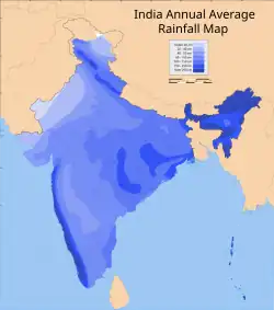 Le climat en Inde est fortement influencé par l'Himalaya et le désert du Thar. Le massif de l'Himalaya, de même que la chaîne de l'Hindū-Kūsh au Pakistan, constituent tous deux une barrière naturelle arrêtant les vents froids venant d'Asie centrale, maintenant ainsi au sein du sous-continent indien des températures plus élevées que dans la plupart des lieux situés aux mêmes latitudes. Le désert du Thar attire les vents de mousson chargés d'humidité qui sont responsables de la plus grande partie des précipitations en Inde.