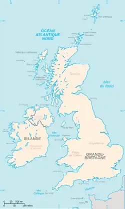 - ↑ En Irlande, le toponyme « îles Britanniques » n'est pas reconnu du fait que l'adjectif « britannique » se réfère au Royaume-Uni dont l'Irlande est indépendante. Pour plus d'informations, voir : Controverse sur le nom des îles Britanniques (en)
