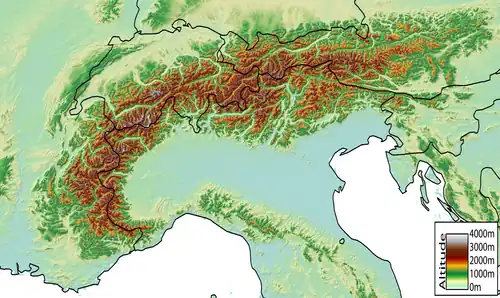 - ↑ Thomas M. Poulsen, Aubrey Diem, Paul Veyret, « Alps » in Encyclopedia Britannica, mis à jour le 29 octobre 2020, consulté le 23 août 2022 [lire en ligne]