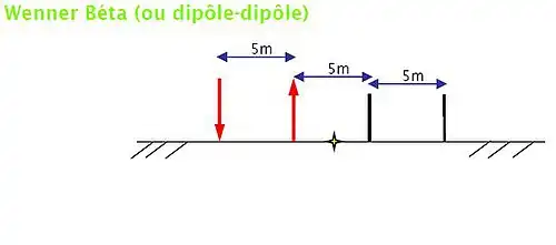 - Wenner Beta : Les électrodes d’injection se situent du même côté par rapport au point de mesure :