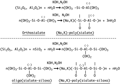 - ↑ Abdullah, M. M. A., Hussin, K., Bnhussain, M., Ismail, K. N., & Ibrahim, W. M. W. (2011). Mechanism and chemical reaction of fly ash geopolymer cement-A review. Int. J. Pure Appl. Sci. Technol, 6(1), 35–44.