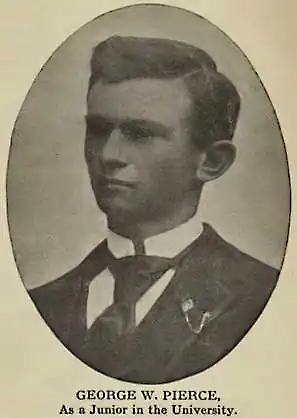 G. W. Pierce est le cadet des trois enfants d'un éleveur texan. Las, comme il l'écrira plus tard, « d'aller remplir des seaux crevés au puits de la ferme paternelle », il se distingue dans ses études : excellent élève au collège de Taylor, il étudie d'abord à l'université du Texas, où il est pris en charge par Alexander Macfarlane, avec qui il cosigne un article[1] destiné au premier numéro de la Physical Review. Il enseigne au lycée de Dallas (1896-7), est avoué près le tribunal du comté de Bastrop jusqu'à ce qu'il obtienne sa bourse pour étudier à Harvard en 1898. Il soutient sa thèse de doctorat, consacrée à la mesure des ondes courtes, en 1900. Après un voyage d'étude post-doctoral à travers l'Europe, qui lui fait découvrir les cours de Ludwig Boltzmann, il est recruté comme maître-assistant à Harvard. Là, il est l'un des fondateurs du Wicht Club (1903–1911), groupe de jeunes enseignants qui désirent poursuivre leur formation tout en travaillant.