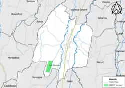 Les communes les plus proches[Note 1] sont[4] : Recurt (2,4 km), Sabarros (3,0 km), Tournous-Devant (3,1 km), Galez (3,6 km), Libaros (3,9 km), Bonrepos (4,1 km), Monlong (4,9 km), Montastruc (5,2 km).