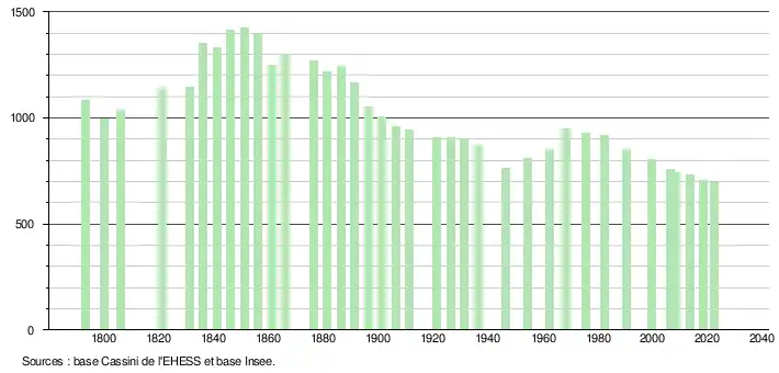 - ↑ Fiches Insee - Populations de référence de la commune pour les années 2006, 2007, 2008, 2009, 2010, 2011, 2012, 2013, 2014, 2015, 2016, 2017, 2018, 2019, 2020, 2021 et 2022.