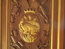 Les boiseries en noyer sculpté sont l'œuvre du menuisier italien Francesco Scibec de Carpi qui les réalisa dès 1535 avec des essences rares, mais se tourna presque exclusivement vers le bois de noyer à partir de 1539, date à laquelle il exécute le parquet de la galerie et les lambris.