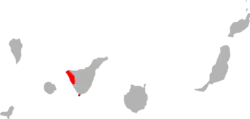 Cette espèce est endémique de Tenerife aux îles Canaries[1]. Elle est supposée avoir été très répandue dans cette île, mais elle ne se rencontre plus que dans une petite zone près des côtes Ouest, le macizo de Teno, ainsi qu'à l'extrême Sud, la montana de Guaza.