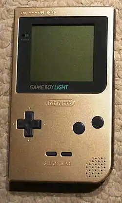 Commercialisée le [18] au Japon seulement, la Game Boy Light apporte à la Game Boy Pocket ce qui lui manquait le plus : une bonne lisibilité, grâce à un rétro-éclairage de bonne qualité avec lequel il devient possible de jouer dans l'obscurité. Le traditionnel interrupteur « on-off » (marche-arrêt) est doté d'une troisième position, la position « Light », qui permet d'activer ou de désactiver le rétro-éclairage sans avoir à redémarrer la console. L'autonomie des 2 piles LR06 varie de 12 heures lumière allumée à 20 h lumière éteinte. Pour le reste cette console diffère très peu de la Game Boy Pocket, sauf par sa taille, légèrement plus grande. Il y a des éditions spéciales, beaucoup plus rares que les versions Silver et Gold : Pokémon Center Tokyo, Astro Boy, Toys R'Us… La console n'est pas un échec, mais elle est rapidement éclipsée par la Game Boy Color, dont l'annonce précède de six semaines la sortie de la Game Boy Light, Nintendo désirant contrecarrer les plans d'une concurrence de plus en plus agressive[10].