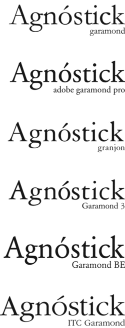 Note : La police inspirée de Claude Garamont s'écrit avec un d à la fin à cause de son pseudonyme garamondus.