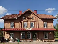 La gare, mise en servie en 1888 et fermée depuis 1971, dispose d'un bâtiment principale historique protégé (Byggnadsminne).