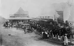 La gare en brique rouge est construite en 1907 [2]. Le service passager prend fin en 1956 et le dernier train de marchandises quitte la gare en 1988 [3].