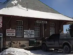 La construction de l’édifice commence et s’arrête aux fondations en 1914 par le déclenchement de la Première Guerre. La construction se termine finalement en 1929. Entre-temps, une nouvelle ligne de voie ferrée avait détourné une grande partie de la circulation de Toronto ; Havelock tombe lentement en période de déclin. La gare de marchandises du Canadien Pacifique de Havelock ferme en 1967 et les trains de voyageurs en direction de Havelock sont supprimés en 1990[1].