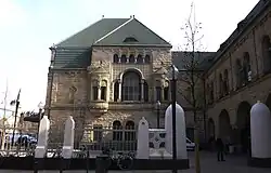 Le projet est confié à l’architecte berlinois Jürgen Kröger. Édifice résolument fonctionnel, la nouvelle gare monumentale doit répondre à la fois aux besoins des services ferroviaires et aux attentes des usagers[6]. Le bâtiment voyageurs, long de plus de 300 mètres et dont la tour de l’horloge s’élève à 40 m, est édifié de 1905 à 1908 par Jürgen Kröger, assisté des architectes Peter Jürgensen (de) (1873-1954) et Jürgen Bachmann (de) (1872-1951), ainsi que du sculpteur Schirmer, dans un style néo-roman rhénan[7]. Le décor sculpté des façades évoque les conquêtes de la Civilisation et la puissance de l'Empire allemand[6]. La gare est inaugurée le [8]. Le coût final de la construction s'élève à vingt-neuf millions de marks-or[9], alors que le cahier des charges initial, prévoyait un budget de 2 190 000 marks-or[10].