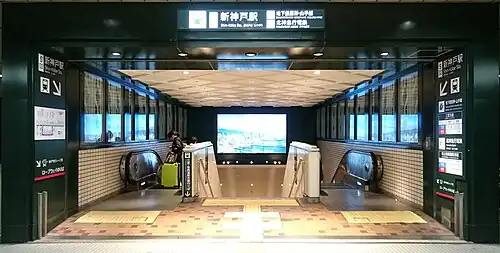 À l'intérieur de la gare une bouche d'accès équipé d'escaliers mécaniques permet de rejoindre la station souterraine Shin-Kōbe de la ligne Seishin-Yamate du métro municipal de Kobe.