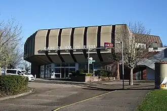 Le bâtiment voyageurs et l'entrée de la gare.
