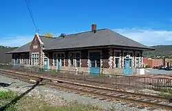 L'ancien bâtiment de la gare fermé au service ferroviaire.