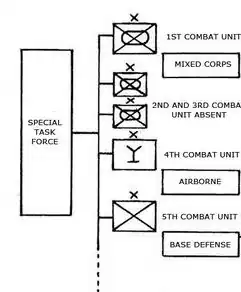- ↑ À terme, la 6e brigade de combat sera formée, avec une force équivalente à troi divisions et une formation de 25 000 hommes.