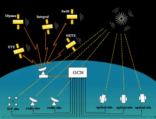 La détection des événements astronomiques transitoires (supernova, nova, sursaut gamma, ...) est de plus en plus fréquente du fait de la multiplication des observatoires astronomiques ayant un champ de vue à grande ouverture ou pouvant observer depuis l'espace des émissions dans des longueurs d'onde interceptées par l'atmosphère terrestre (gamma, X, infrarouge). Ces phénomènes présentent un grand intérêt pour les astrophysiciens car ils fournissent des informations de premier plan sur les caractéristiques des objets célestes très éloignés et les processus à l'oeuvre dans les étoiles et les galaxies. Le réseau de communication GCN a pour objectif de permettre à la suite de la détection d'un de ces phénomènes dont la durée peut être très courte (selon le cas quelques secondes, minutes, heures,...) de diffuser très rapidement l'information pour que d'autres observatoires puissent effectuer des mesures complémentaires grâce à leurs caractéristiques spécifiques (longueurs d'onde observées, présence d'un spectromètre, résolution spatiale et spectrale, position géographique, ...)[1].