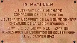 Geoffroy de La Bourdonnaye, né le à Paris, est un Français Libre de la première heure qui participe à l'épopée de la 2e DB. Il est mortellement blessé le à Grüssenheim dans les derniers combats de la poche de Colmar[1] et meurt à Thionville le [2].