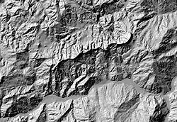 Modélisation en fausse 3D avec ombrage (dérivée d'une base de données topographique)