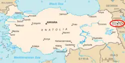 Mais il ne donne pas d'autre indication sur ce Mont Taurus, ou à qui il fut livré. Selon Anthony Bryer, le Taurus (Tauresion en anglais) ne peut pas être assimilé à la chaîne des monts du même nom au sud de l'Anatolie, et qui font face à Chypre en Méditerranée, puisqu'il est impossible que l'empereur, alors vassal des Mongols, ait conduit seul une expédition dans cette région[12]. D'autres auteurs ont proposé une variété d'autres solutions, mais pour Bryer il ne fait aucun doute que « Taurus » n'est autre que la cité de Tabriz, en Azerbaïdjan actuel : les Latins, Marco Polo en tête, l'appelaient « Tauris » d'après les Arméniens de Cilicie qui prononçaient « T'awrež »[13]. Il est vrai que Tabriz fut construite dans une plaine immense, et qu'aucune montagne ne s'y trouve ; mais à une semaine de Tabriz se dresse le mont Ararat sur le route qui mène à Trébizonde. C'est là, affirme Bryer, que Georges Comnène fut trahi.